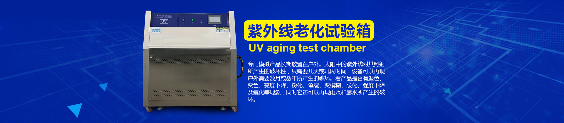 紫外線老化試驗箱被廣泛用于涂料、塑料、橡膠及油墨等行業(yè)的老化室測試中,包括退色、性能下降,脆化、開裂等。為產(chǎn)品改良提供了大量的真實數(shù)據(jù),縮短了產(chǎn)品研發(fā)和設(shè)計的過程。 紫外線老化試驗箱所產(chǎn)生的紫外線通常照射在地球表面的太陽紫外線強烈...